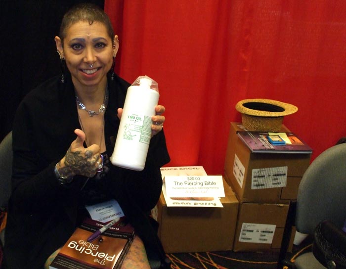 Different manufacturers produce emu oils of varying qualities, and it may not perform equally well in all climates. I once tried an inferior brand that did smell and taste like a big, dead bird. Use only certified fully refined oil on piercings. The idea of suggesting oil for piercings seemed appalling after years of preaching against the use of ointment. All I can say is, “This isdifferent!”