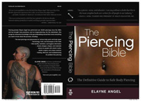 The Piercing Bible - A factual consumers' guide to safe body piercing by one of the world's most respected, experienced, and renowned professional body piercers. This one-of-a-kind resource also contains information for people who deal with piercees: medical professionals, educators, parents, and others. There's plenty of tips and techniques for piercers, too! Over 300 pages with many illustrations and photos. Angel has performed over 40,000 piercings since the 1980s. There is no other in-depth reference book exclusively about body piercing.